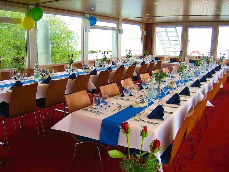 Die Einrichtung kann ganz nach Ihren Wünschen flexibel gestaltet werden und verfügt über 60 Banketplätze sowie ein Sonnendeck. Gerne sorgt das Ochsen-Team während der Fahrt für Ihr leibliches Wohl. Steigen Sie ein und lassen Sie sich verwöhnen.