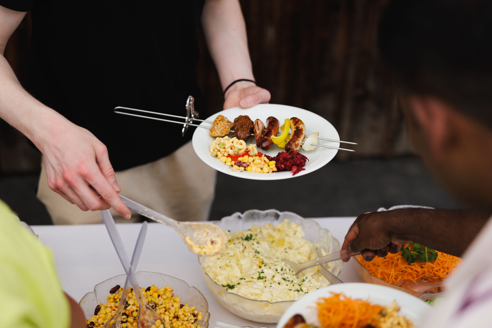 Wir empfehlen Ihnen Rind, Poulet, Kalb, Schwein, Würstli, Grillspeck, Crevetten und feines Grillgemüse mit diversen Barbecue-Saucen. Passend dazu ein reichhaltiges Salatbuffet und auf Wunsch eine warme Beilage.
