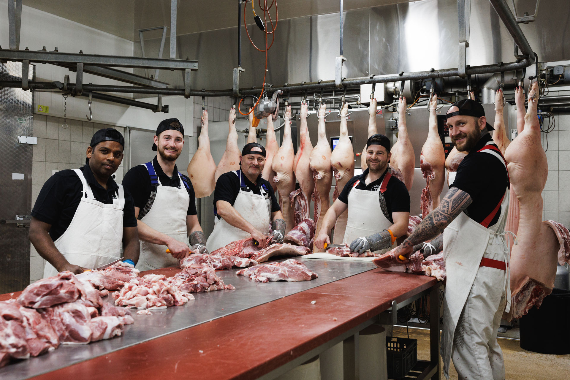 In Güttingen befindet sich unsere Produktion inklusive Schlachtbetrieb. Neben dem Ausbeinen und der Feindressur der Fleischstücke, sind in Güttingen auch die Wursterei und der Bauernrauch. Trotz modernster Ausstattung basiert der Grossteil unserer Arbeit auf bewährtem Metzger-Handwerk, das wir mit Leidenschaft und Sorgfalt ausüben.